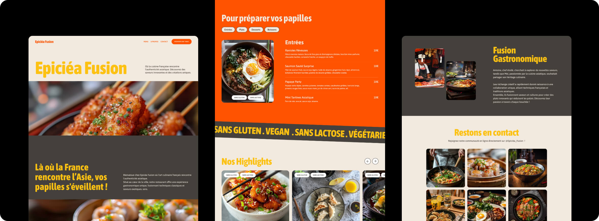 Entrez dans le monde vibrant et ludique du modèle Epicéa. Conçu pour les professionnels de l'Horeca, ce design dynamique multi-pages est idéal pour mettre en valeur vos plats, présenter facilement votre menu, et permettre à vos clients de réserver leur table directement en ligne.